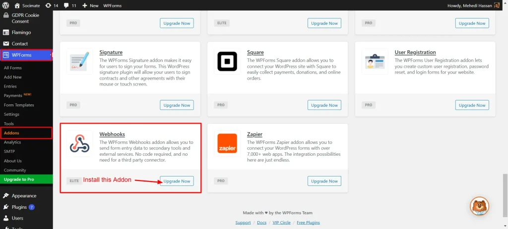 Along with the WP form plugin (You must have the pro version of the WP form), we will need a plugin calledWebhooks Addon.