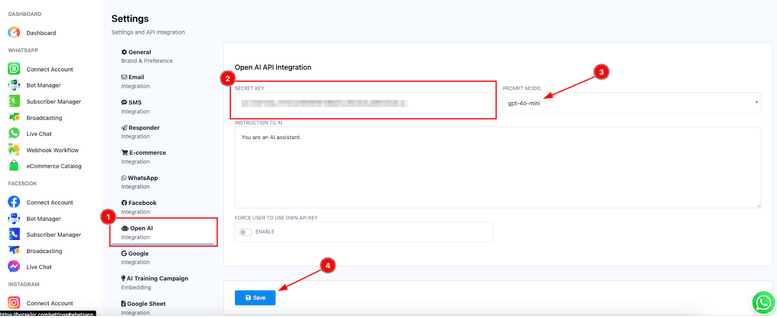 Step 5: Use with your own OpenAI API key (Optional, available only for agency packages)