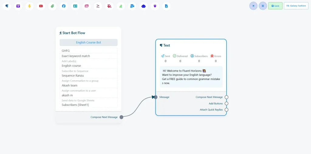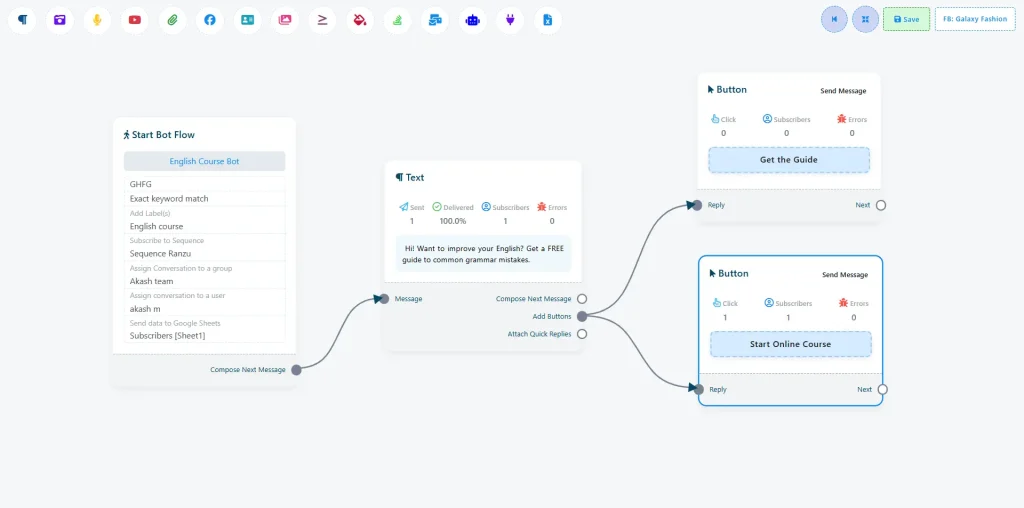 For this blog we are going to make a simple chatbot that will take only 5 minutes to make. Suppose you are an online English language tutor who wants to sell your guide book and online course through a chatbot. So I’m going to show you here how you can easily create a chatbot for this purpose in 5 minutes.