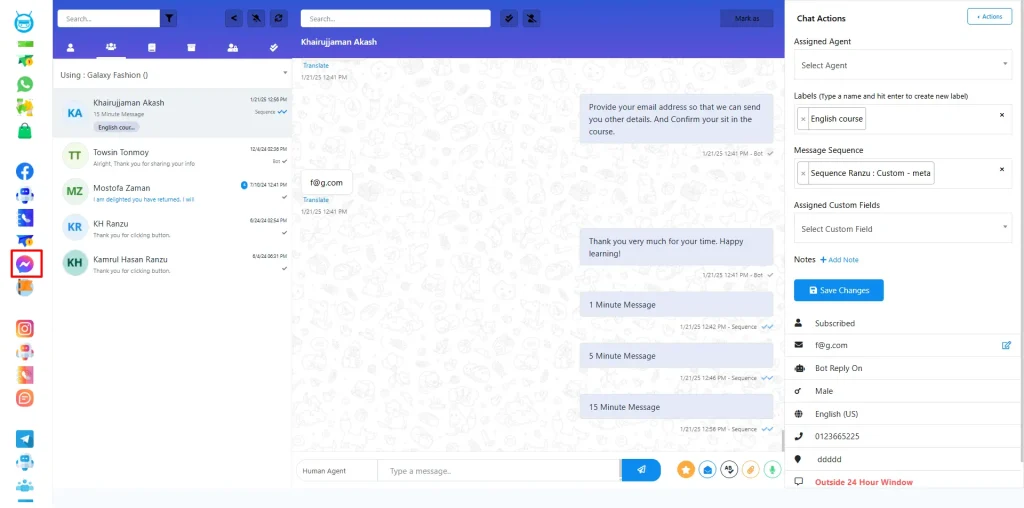 - Send a Sequence Message Campaign: Initiate a series of automated messages via Messenger, SMS, or email.