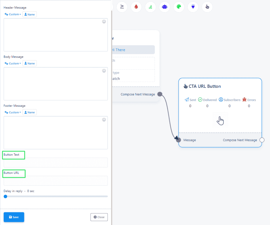 - Create a Bot Flow: Set up a bot flow and add a CTA URL button.