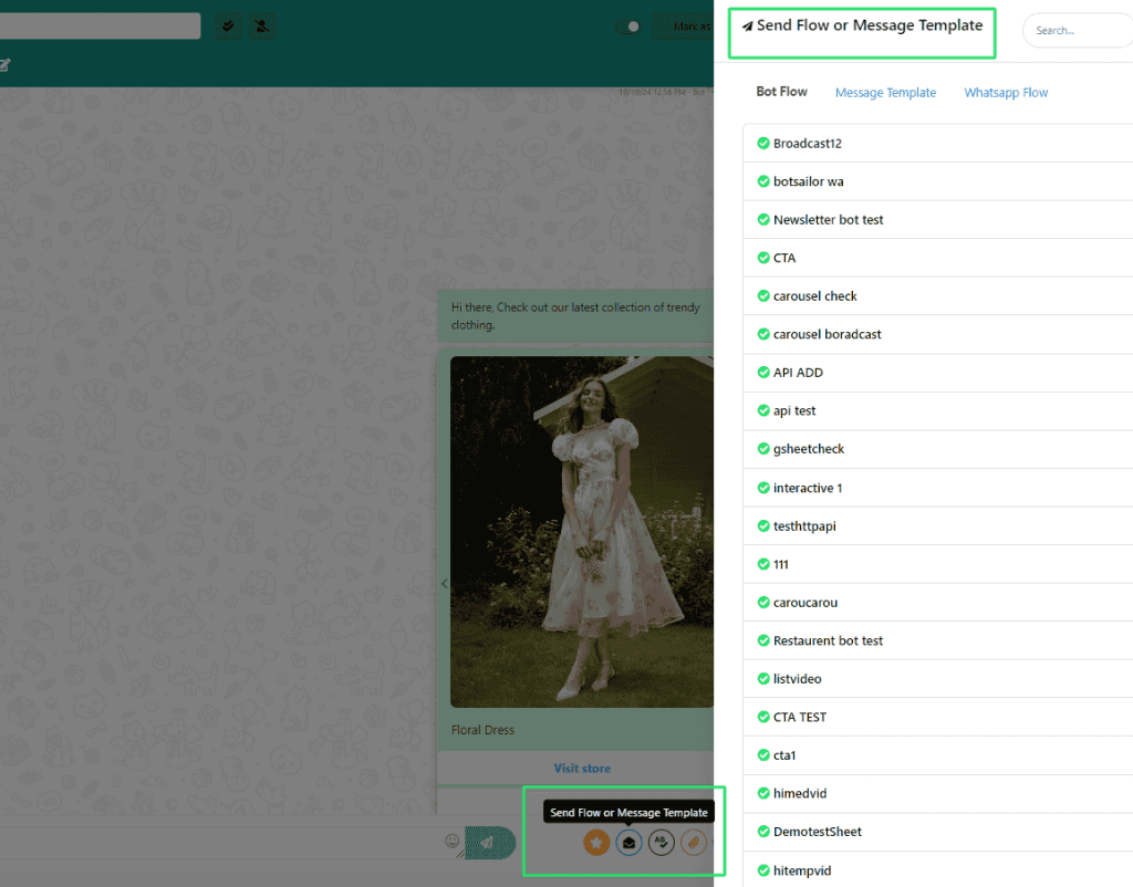 That’s it. Save your bot & now your bot will send a CTA message to your users with a desired ‘url’.The perk is, you can also send the CTA url button now from your live chat. Just go to your live chat section, select flow or message template, & send.