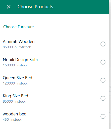 Example: #Furnitureproduct->price# – #Furnitureproduct->stock_status#. - Save Selection:Map user selections to a custom field.