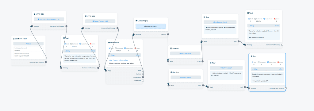 - Thank Users:Add a text node to acknowledge user selection and display product details.