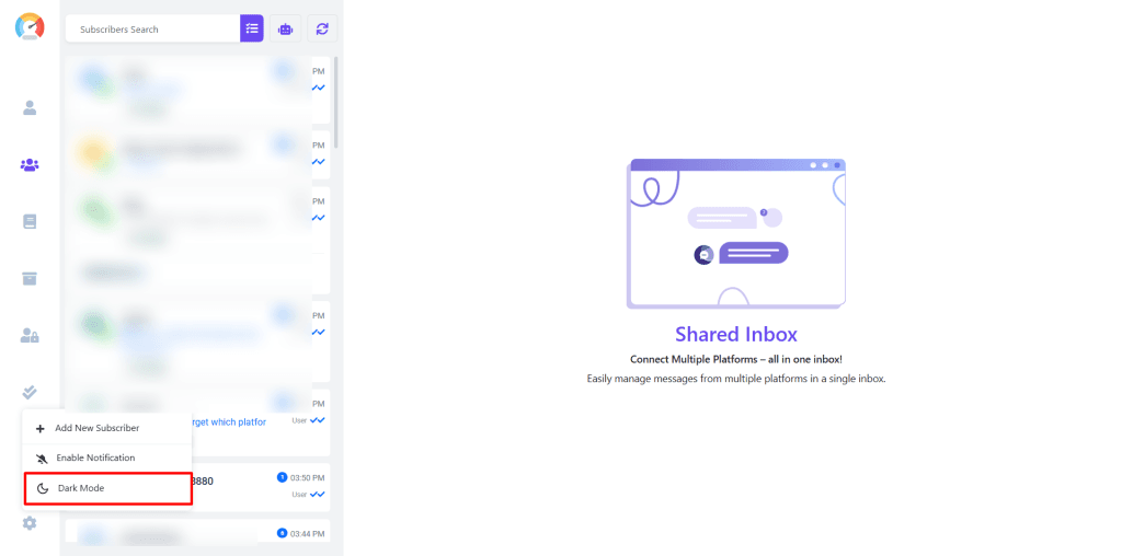 A dark mode is known to change the color scheme of an app or a website to darker shades instead of light. Users of such an app or a website prefer the less vivid and more toned down aesthetic. In dark mode, text and icons show up in lighter shades such as white while the background is dark grey or black. This can lessen eye strain, particularly in darker settings. Moreover, some individuals find dark mode more attractive and effortless to read. Similarly, in BotGenius , the dark mode option can be turned on or off at your convenience for the Omnichannel Inbox.